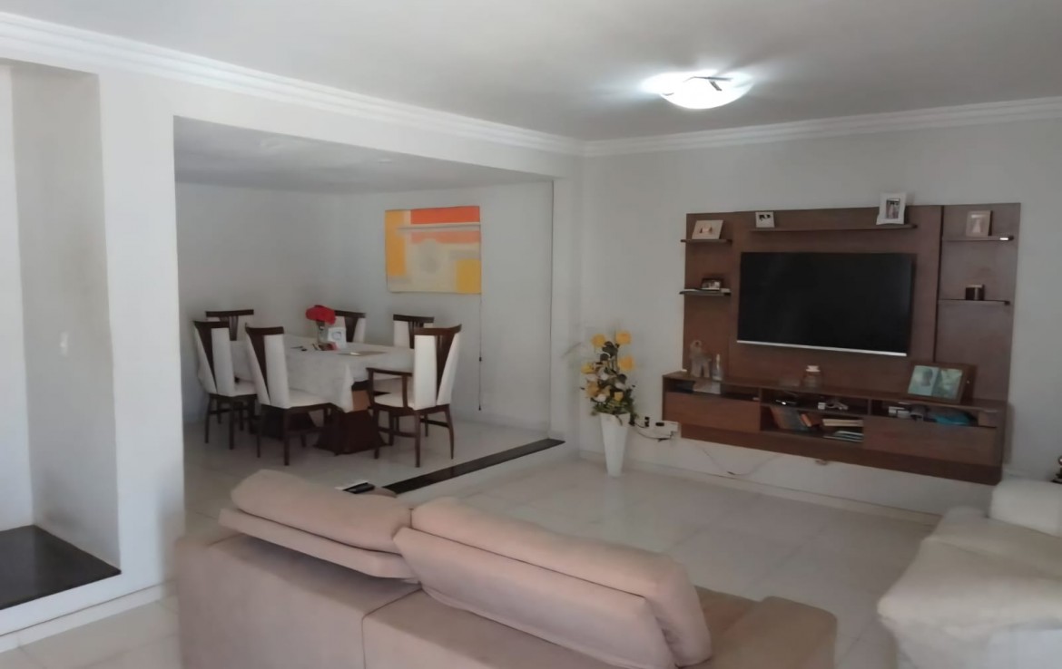 Composta por:  Sala, cozinha, 04 quartos, sendo 01 suíte, 06 banheiros, 05 vagas de garagem, 02 salas, área de serviço, copa, despensa.