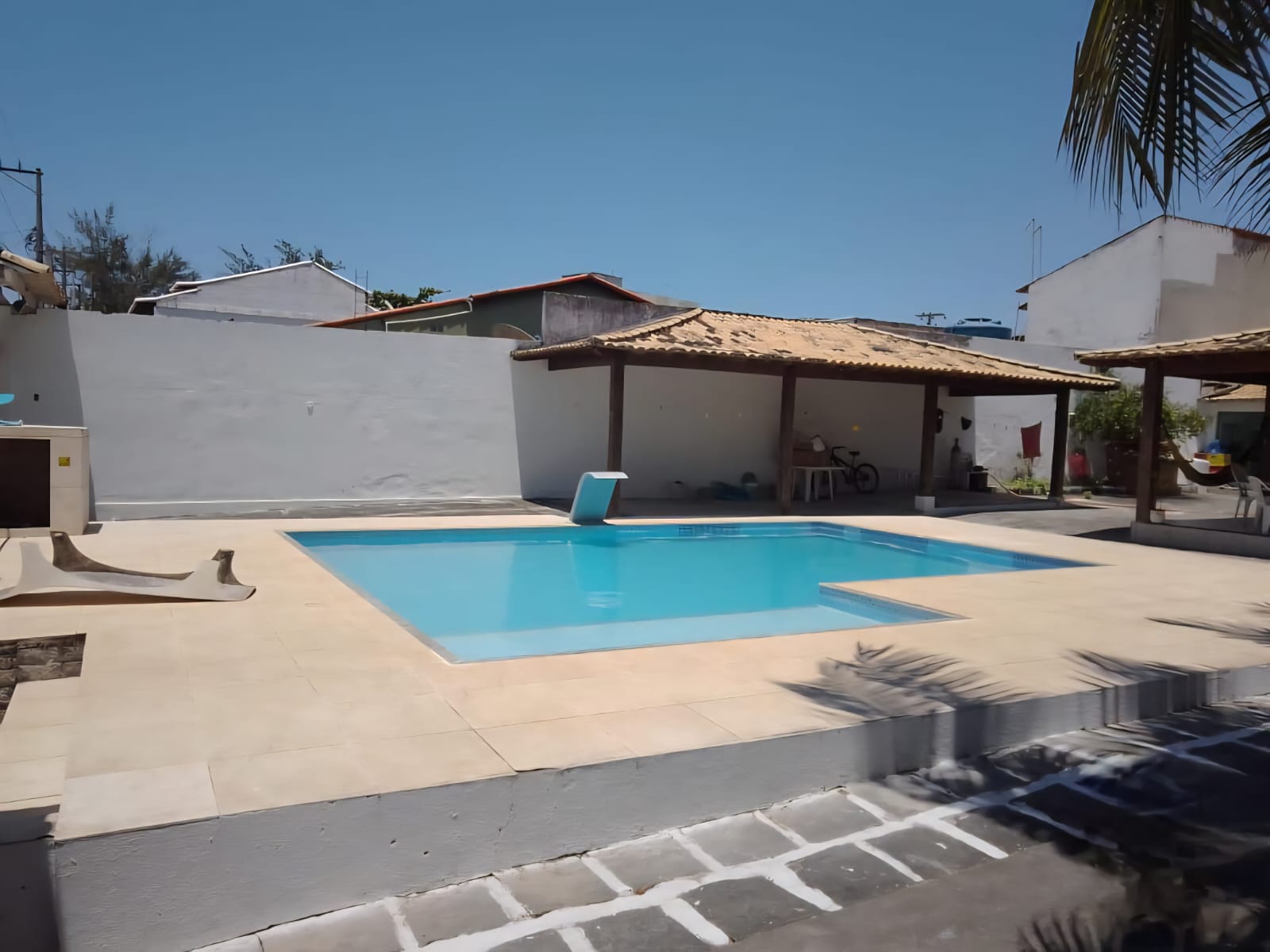Área gourmet com churrasqueira, sauna e piscina.