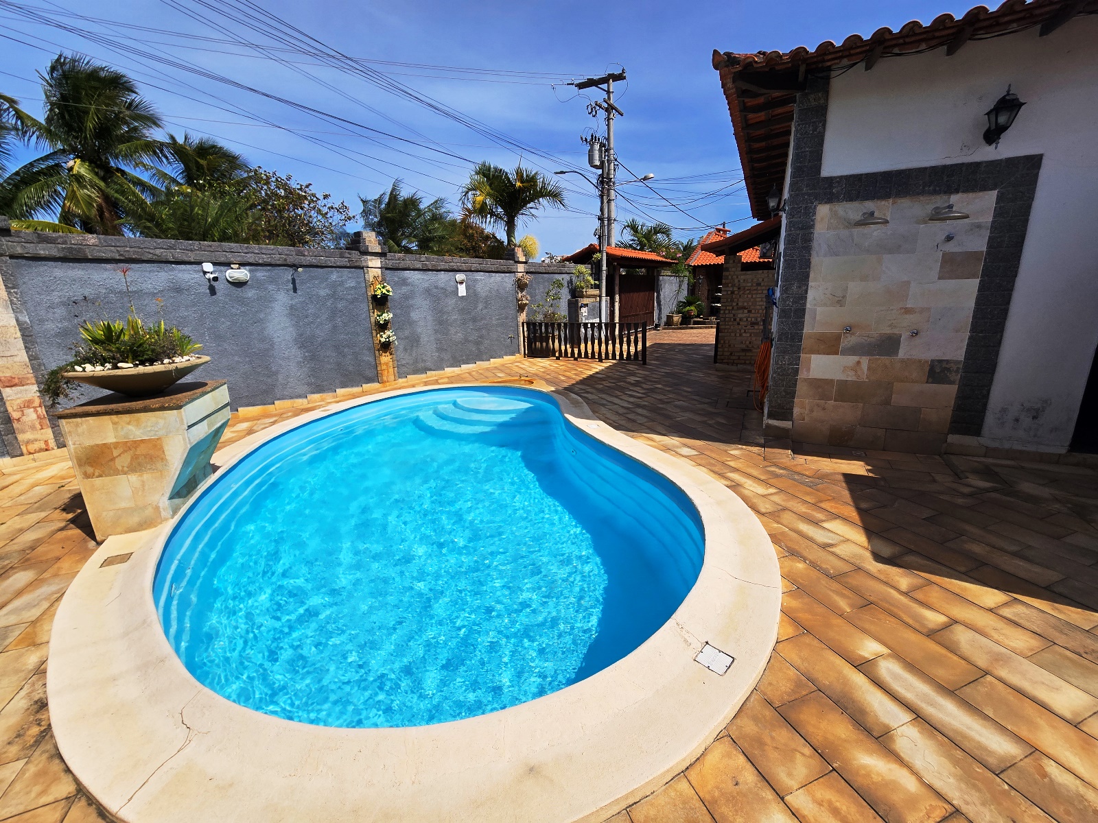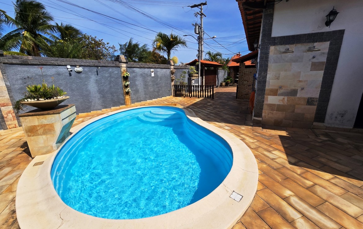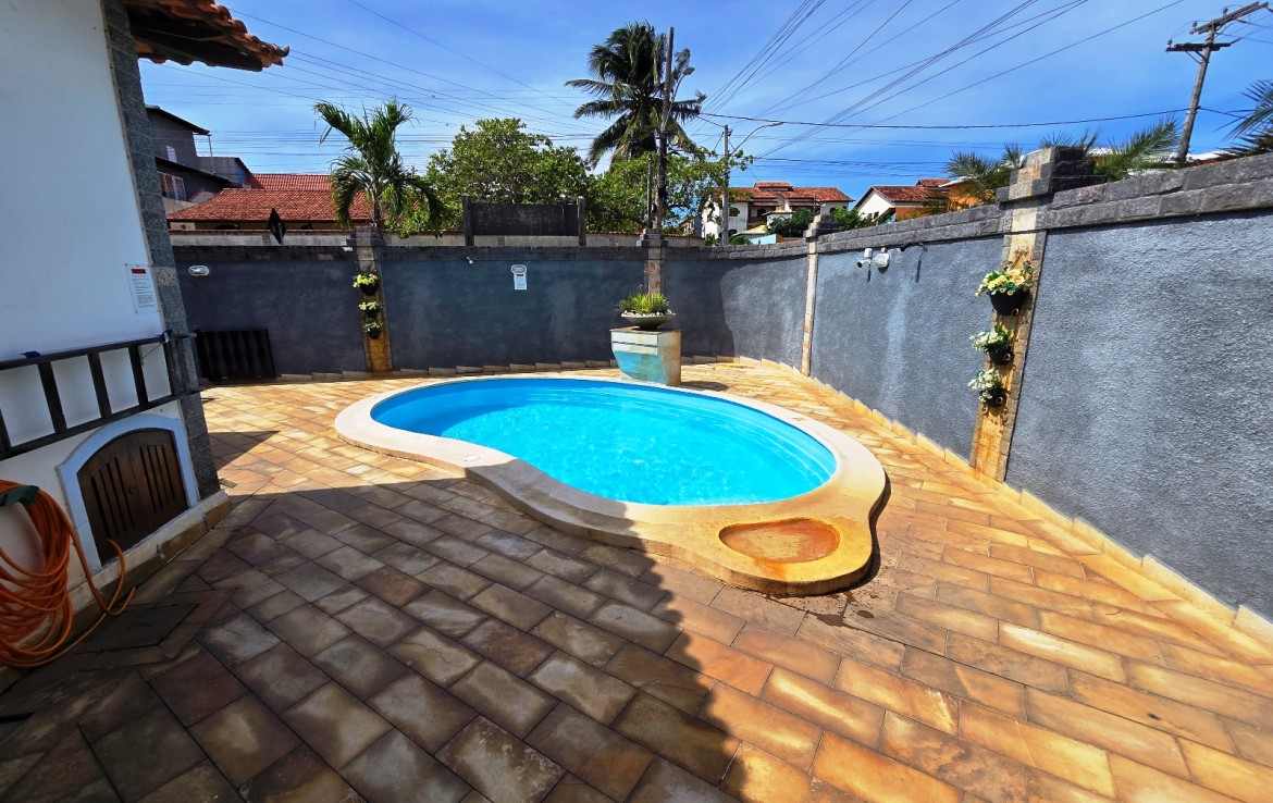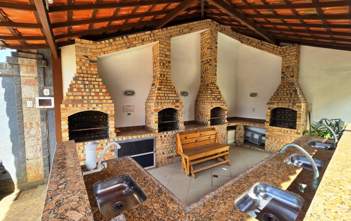 ÁREA DE LAZER DO CONDOMÍNIO COM PISCINA, CHURRASQUEIRA, SAUNA E DUCHA.