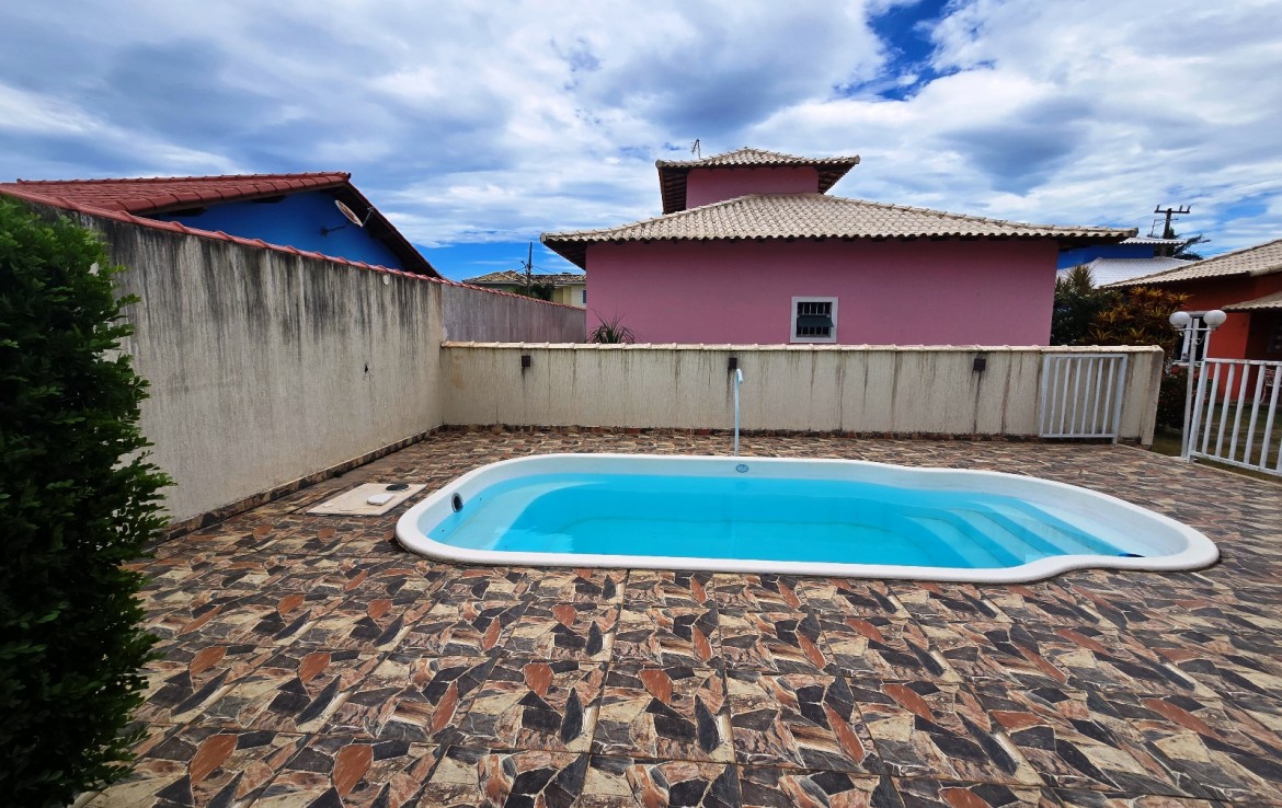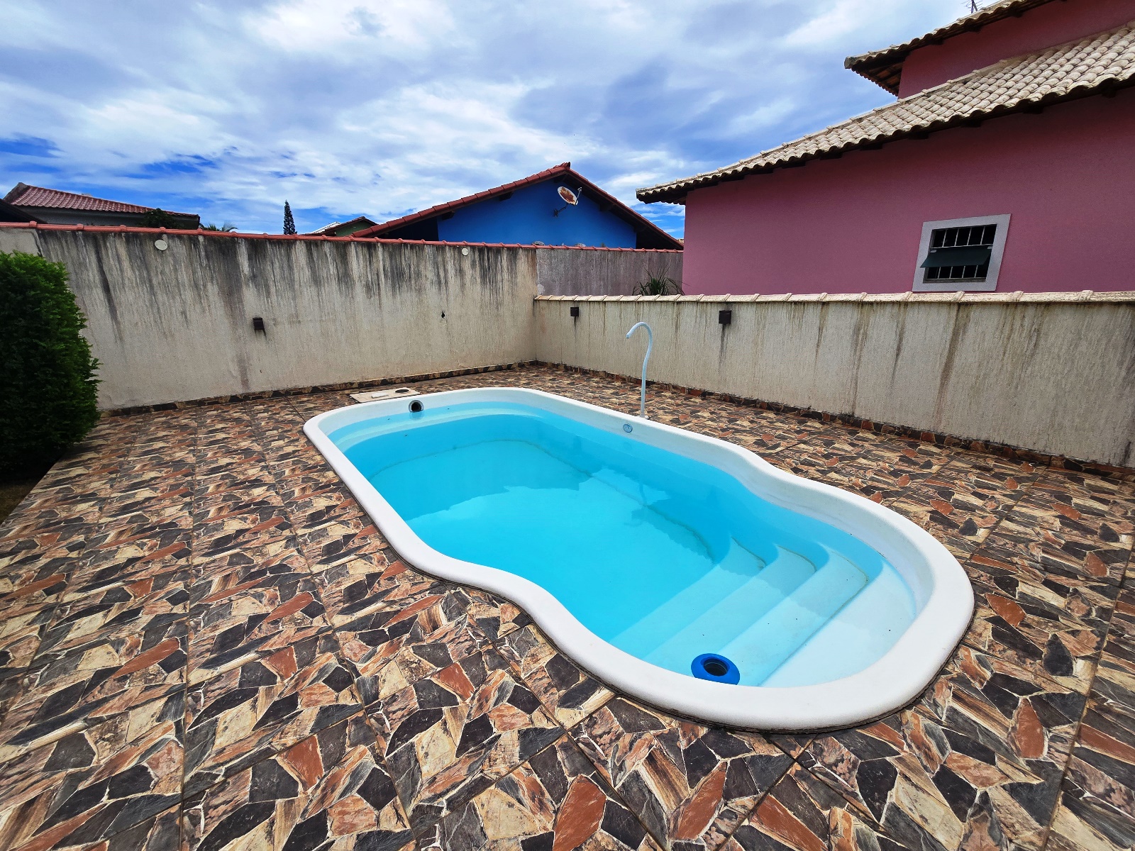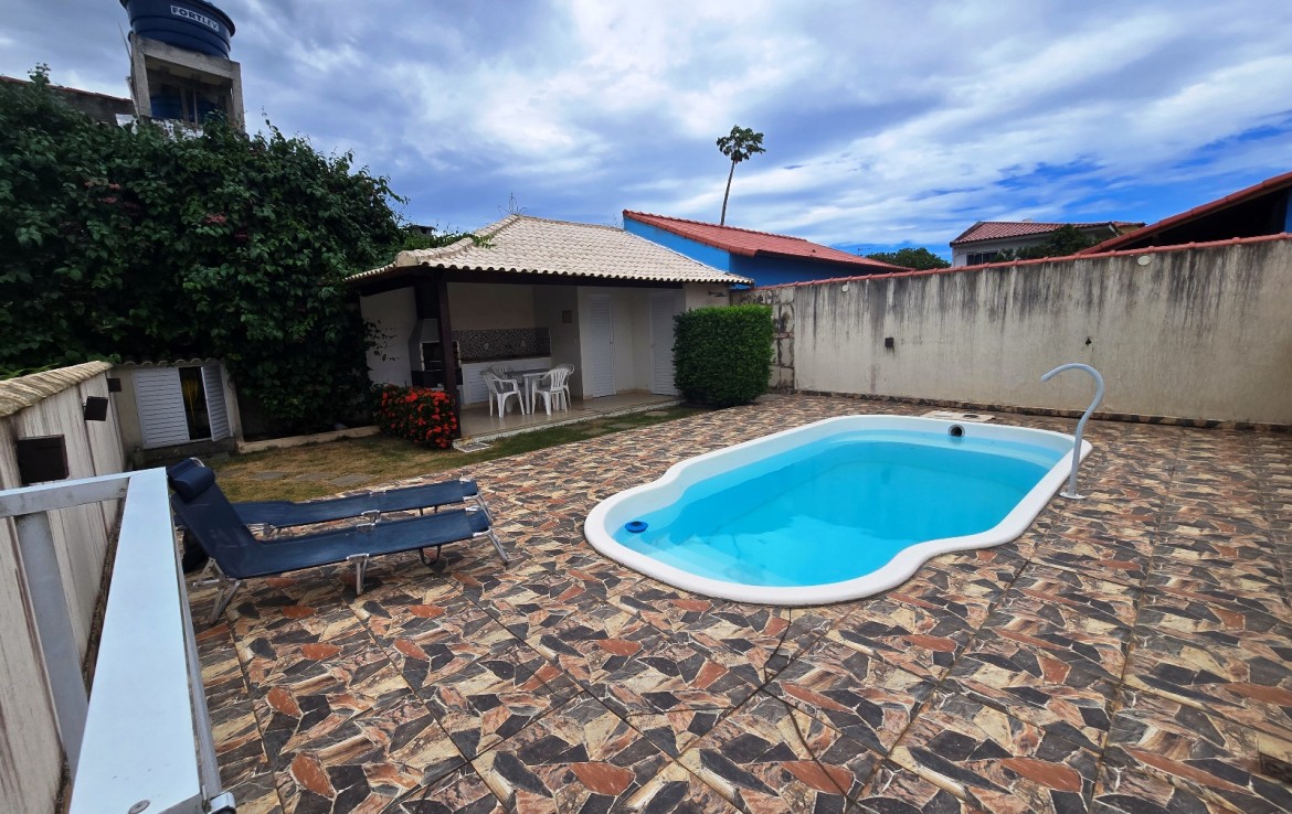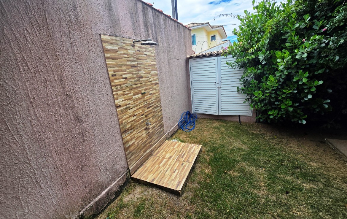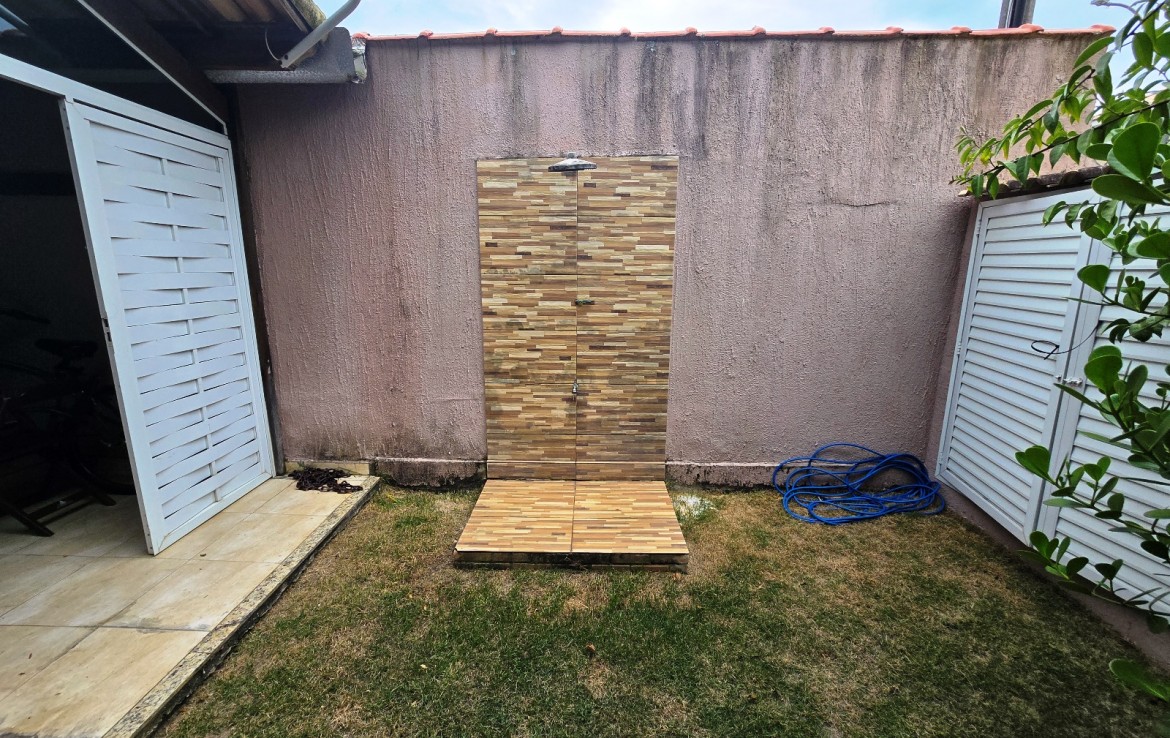 ÁREA DE LAZER DO CONDOMÍNIO COM: PISCINA, CHURRASQUEIRA, DUCHA E BANHEIRO SOCIAL.
