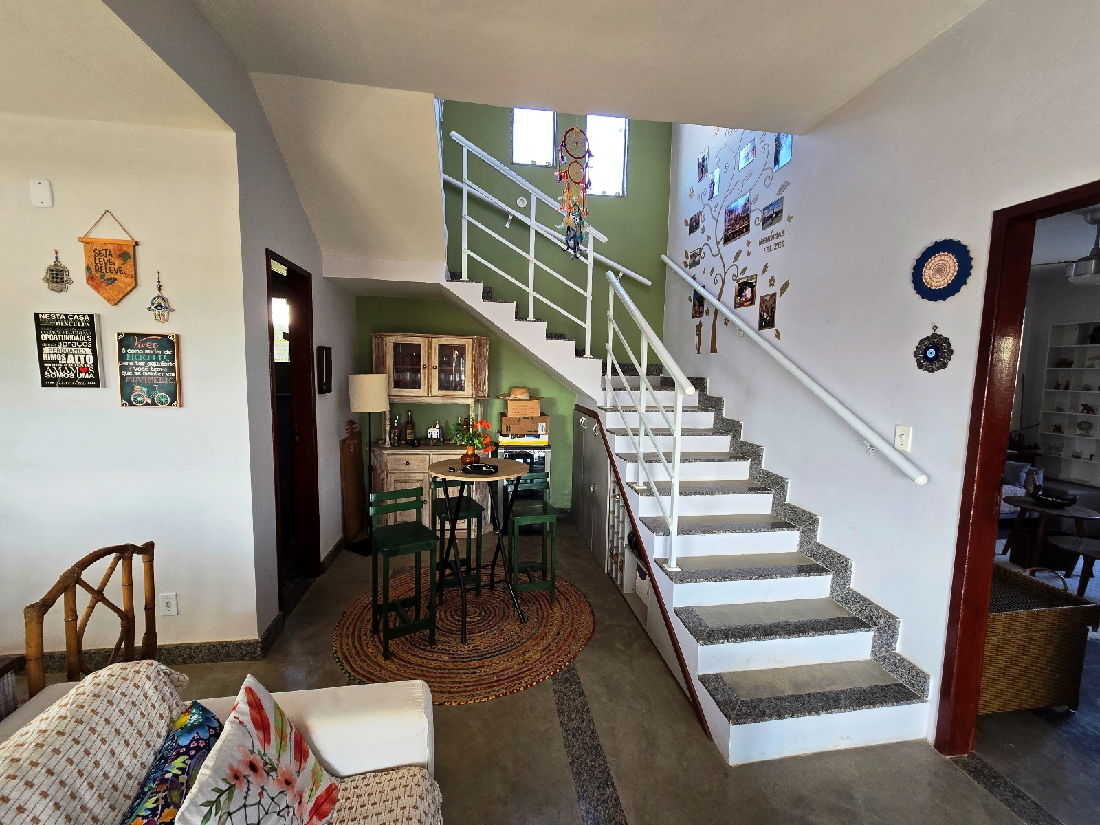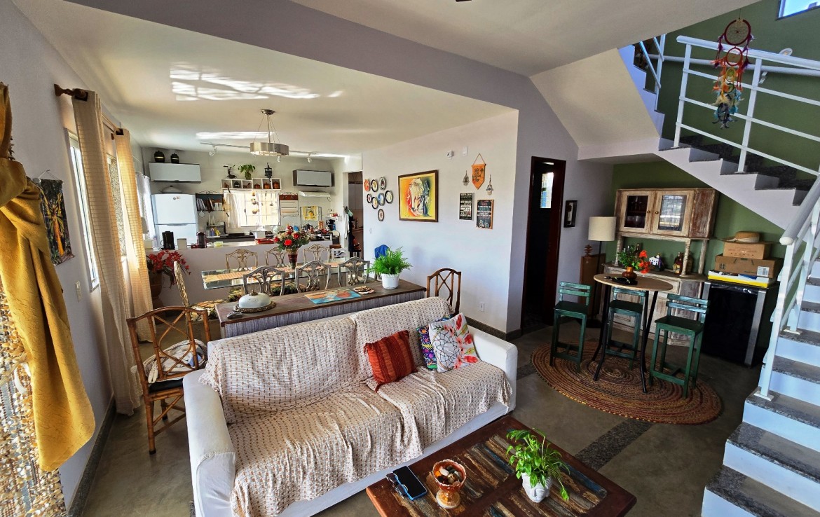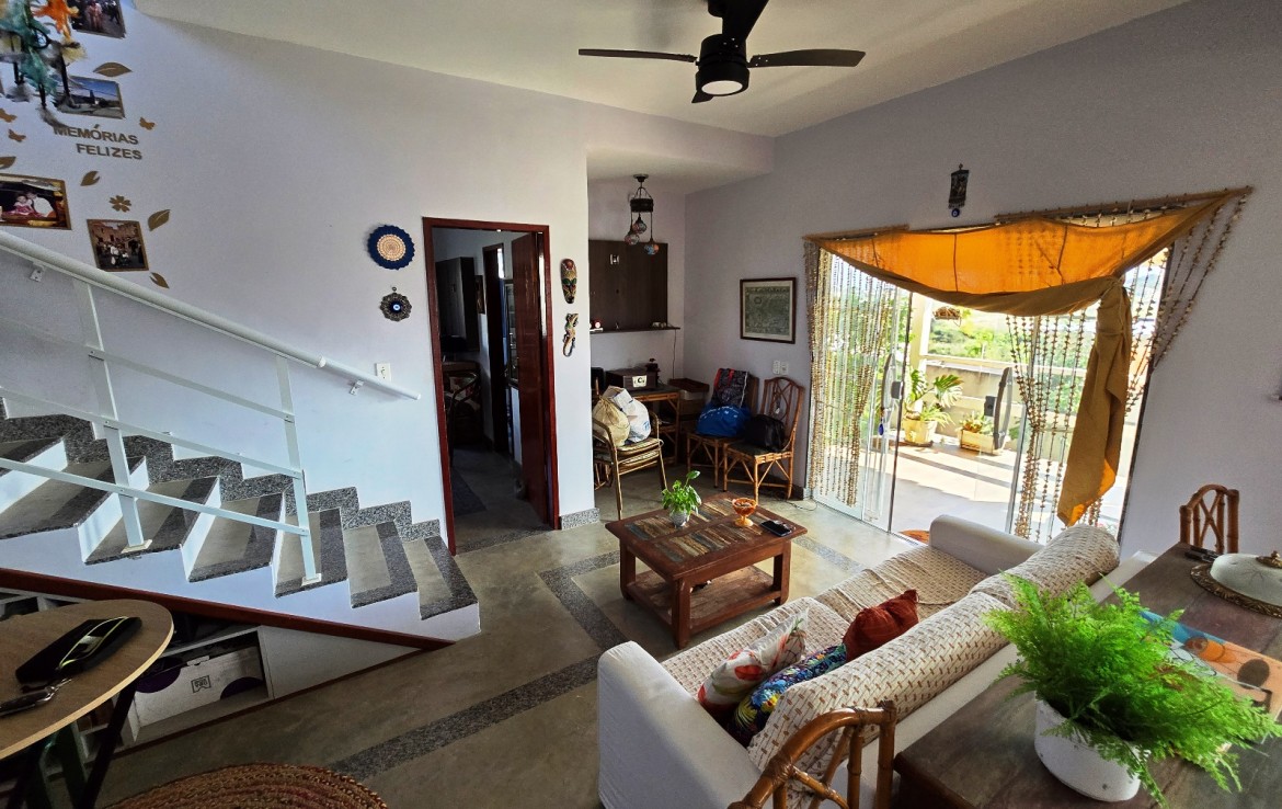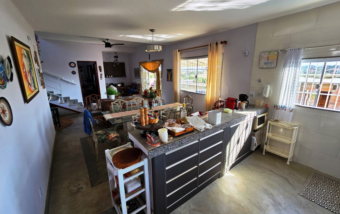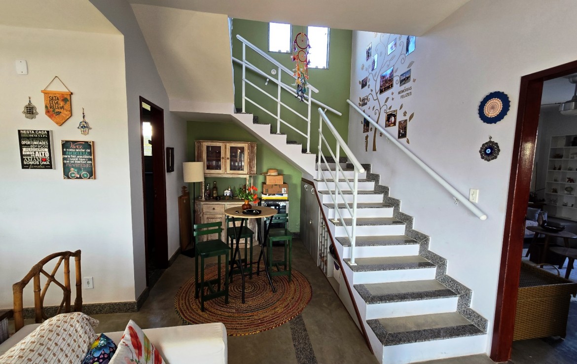 Primeiro pavimento composto de ampla sala, integrando os ambientes de tv, estar, bar, lavabo e cozinha (com armários embutidos), área de serviço completa com lavanderia. Ainda no primeiro andar uma Ampla Suíte.
