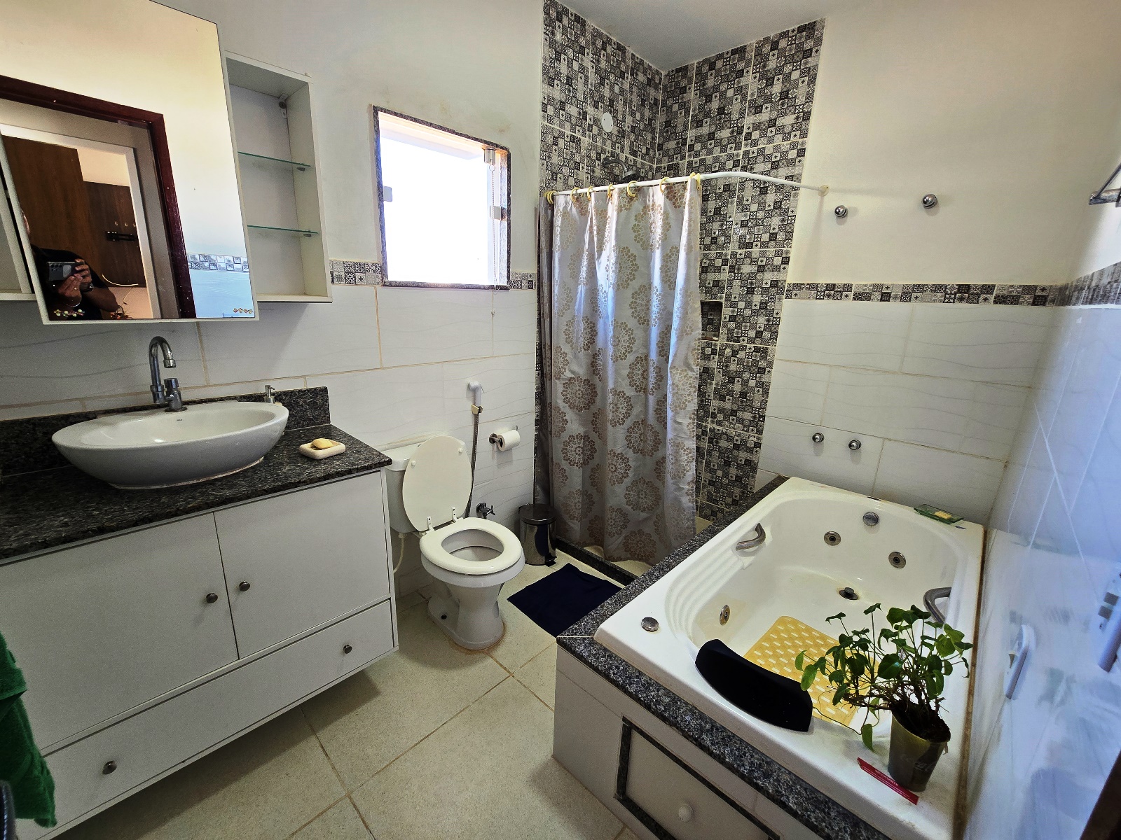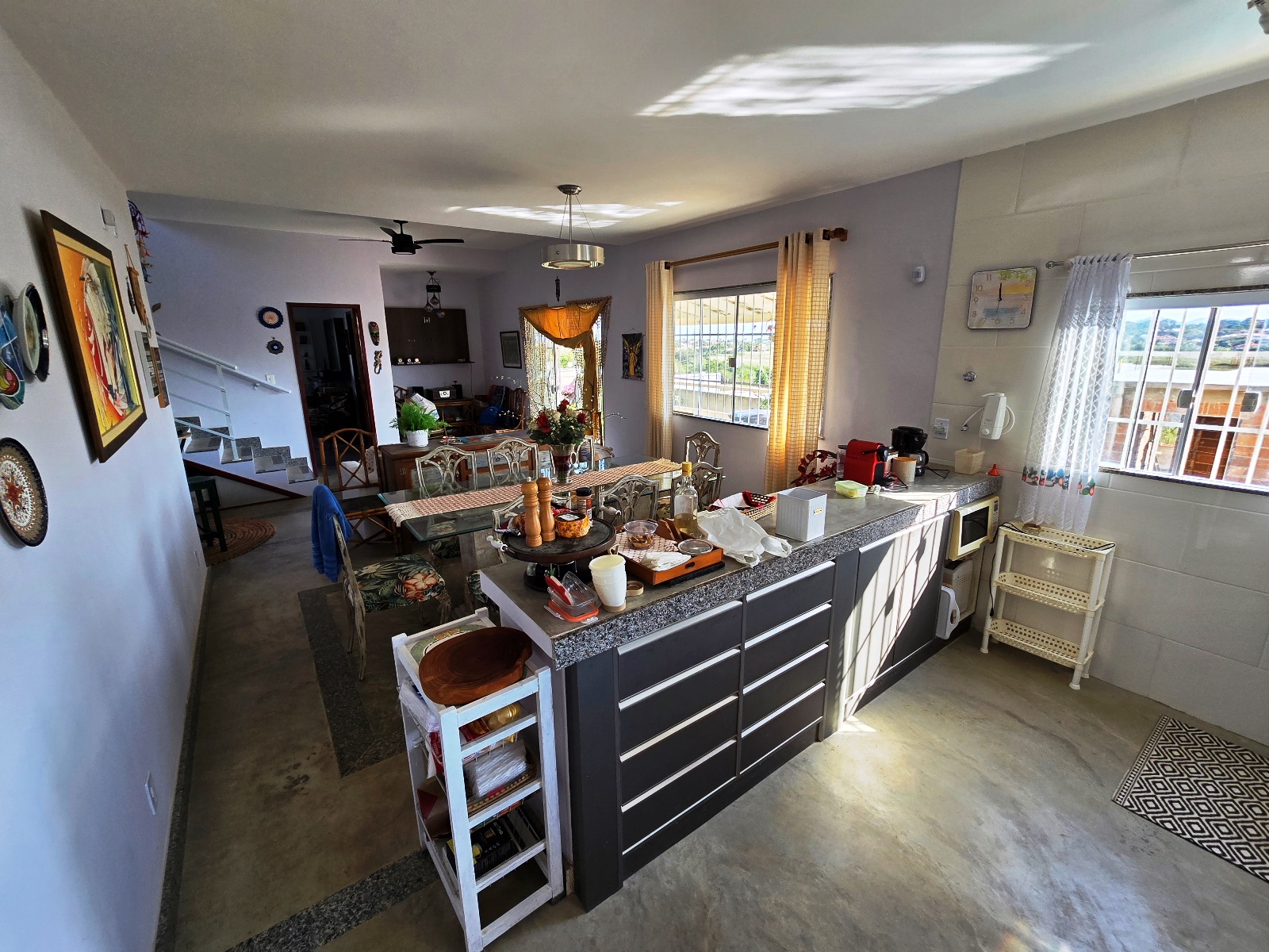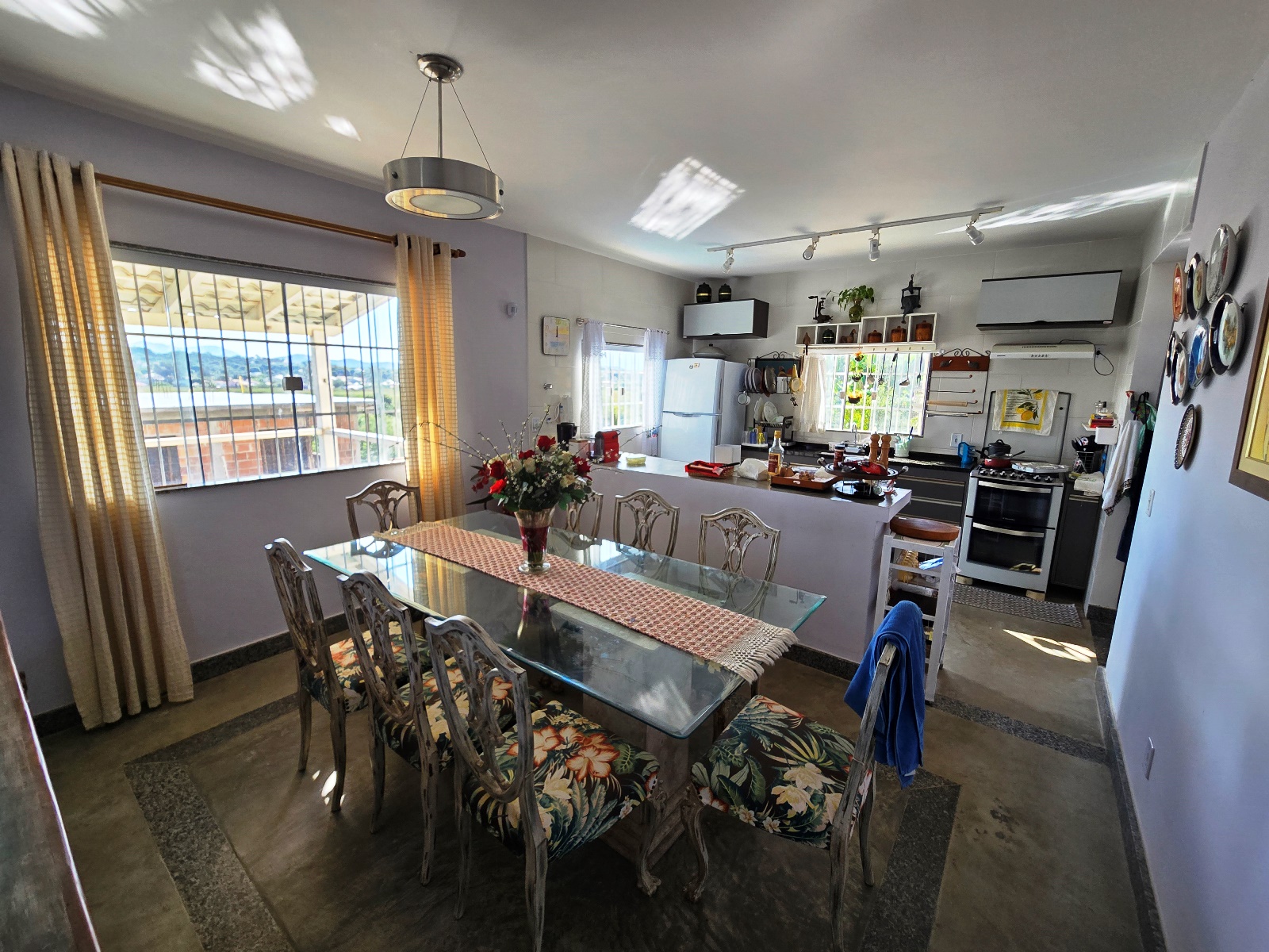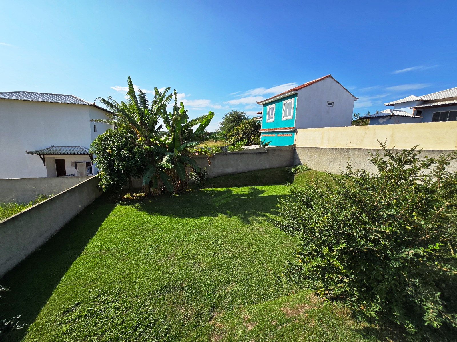 * Casa com placas de aquecimento solar que fornece água quente nos banheiros e pia da cozinha.
