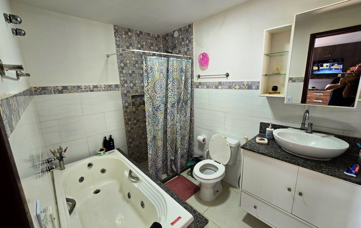 Segundo pavimento composto de 03 quartos, sendo 02 suítes com armários com banheira de hidromassagem.