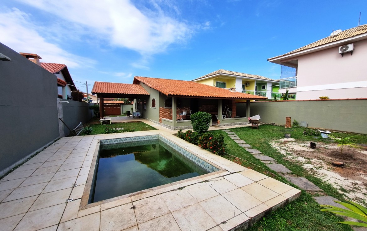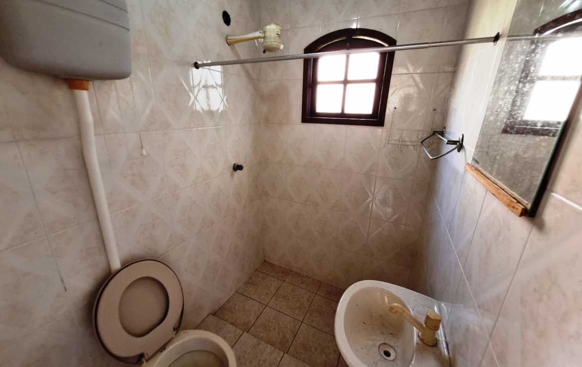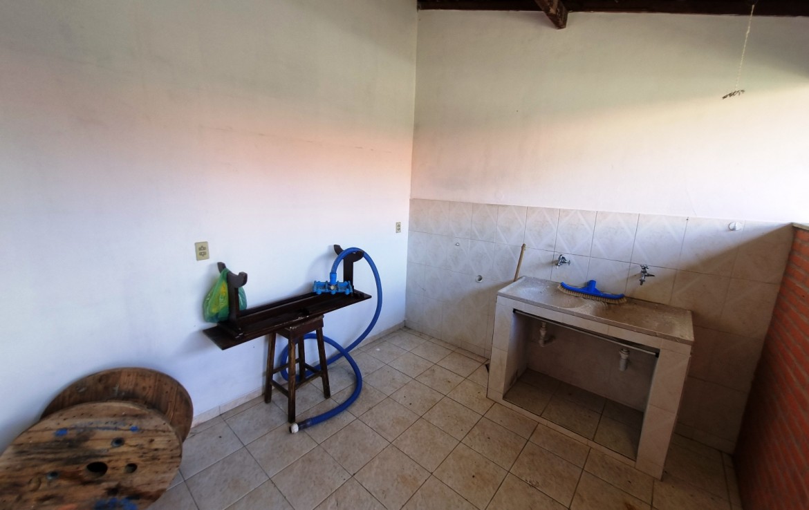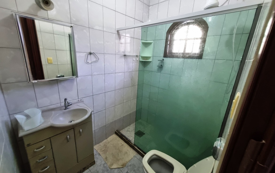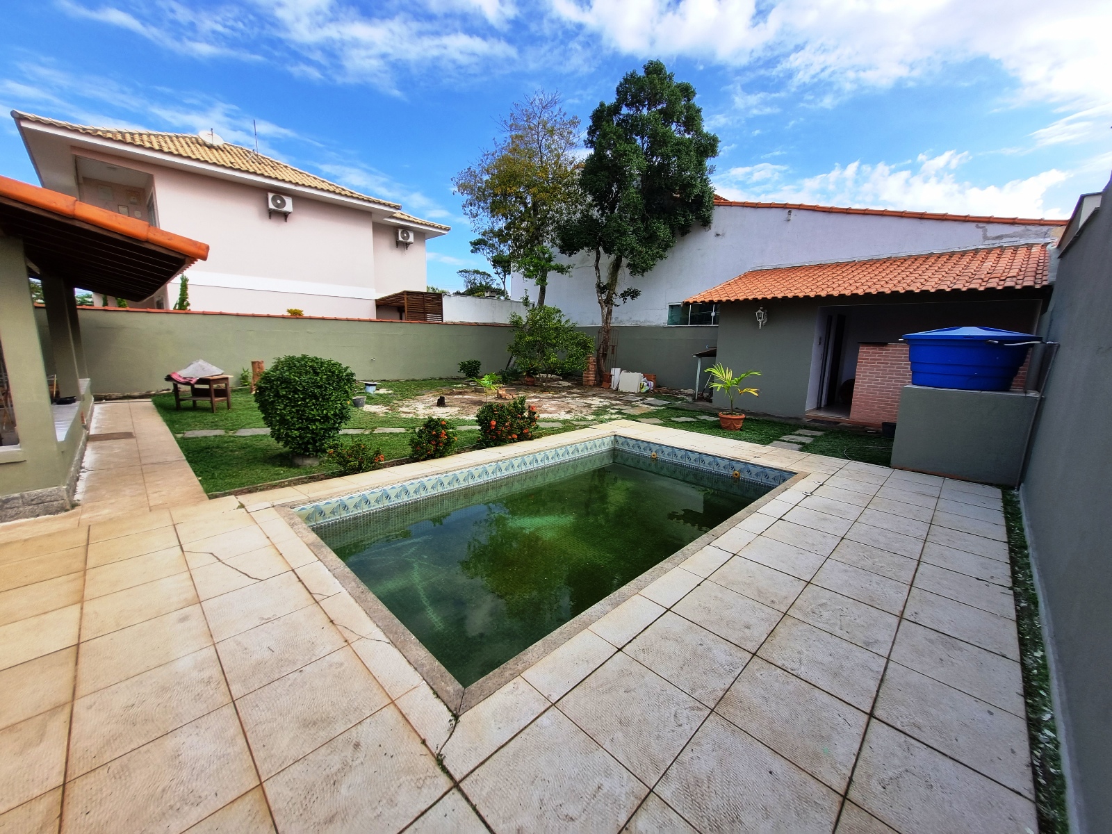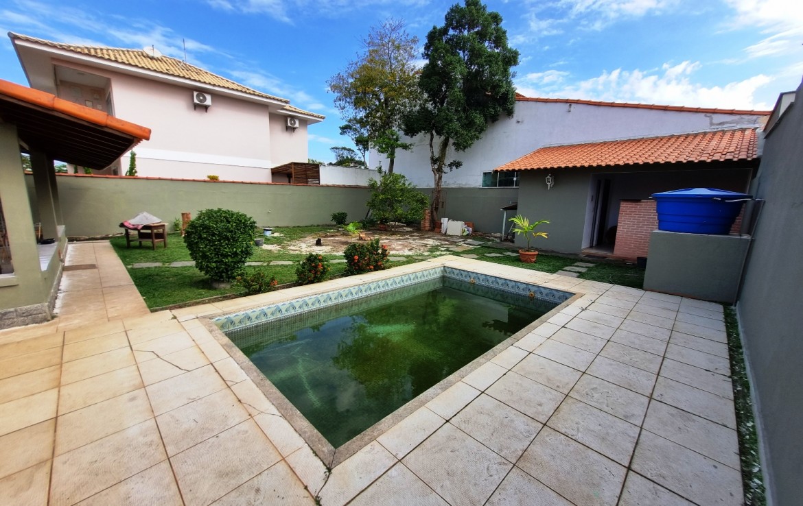 PISCINA, DUCHA, BANHEIRO EXTERNO E TERRENO GRAMADO E ARBORIZADO.