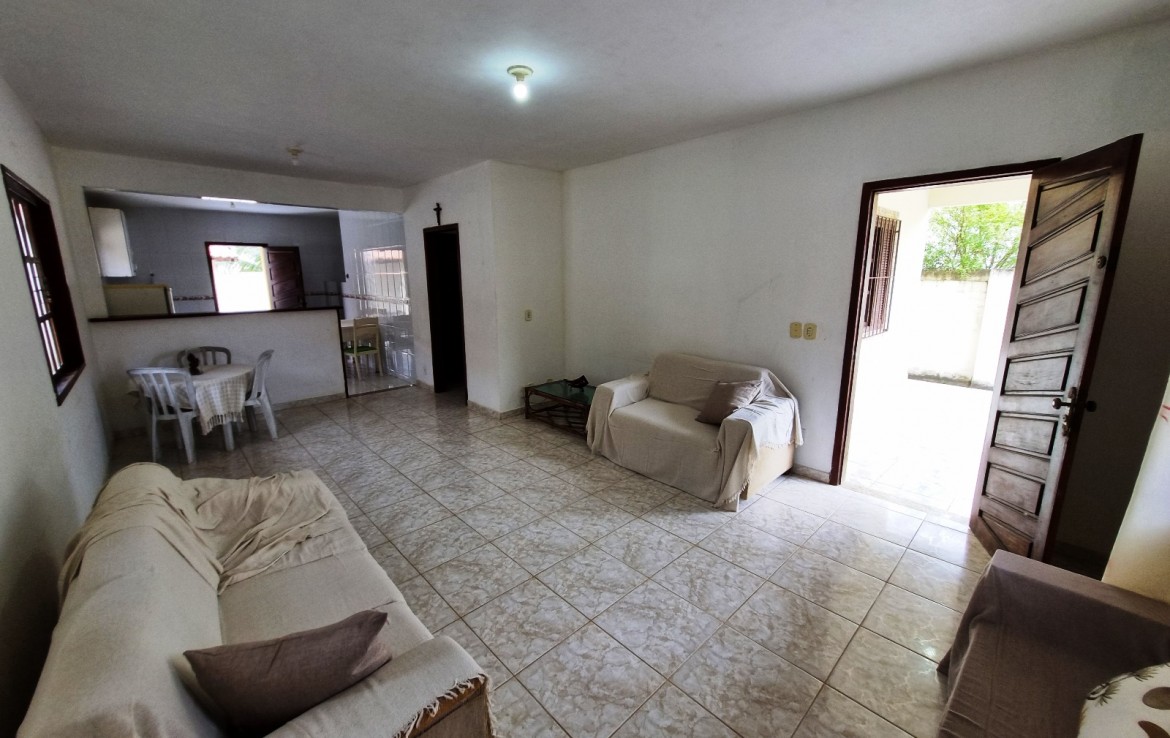 IMÓVEL COMPOSTO POR: SALA, COZINHA AMERICANA, 02 QUARTOS SENDO 01 SUÍTE, BANHEIRO SOCIAL, ÁREA DE SERVIÇO, VARANDA NA FRENTE E FUNDOS, LAVABO EXTERNO.