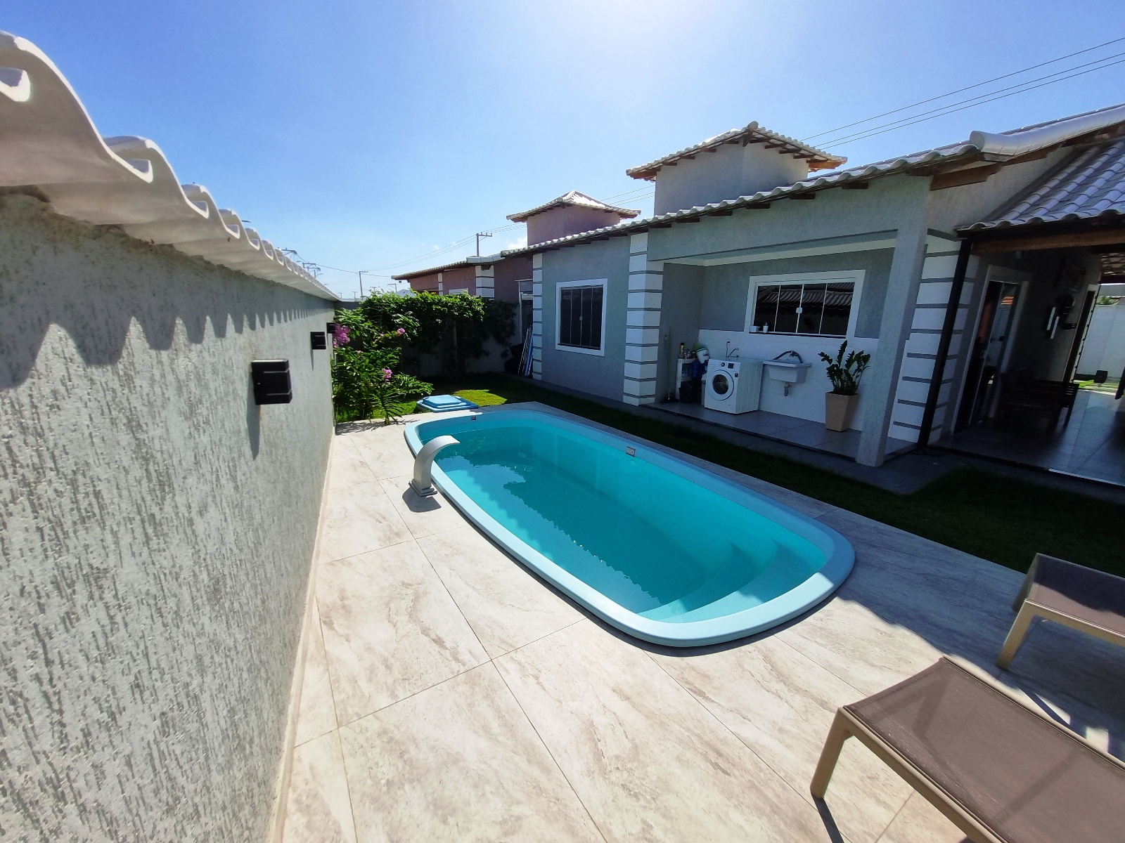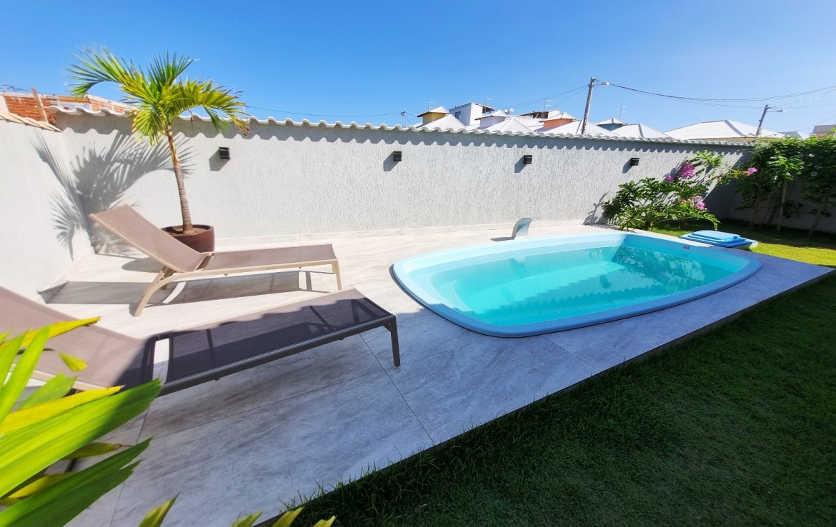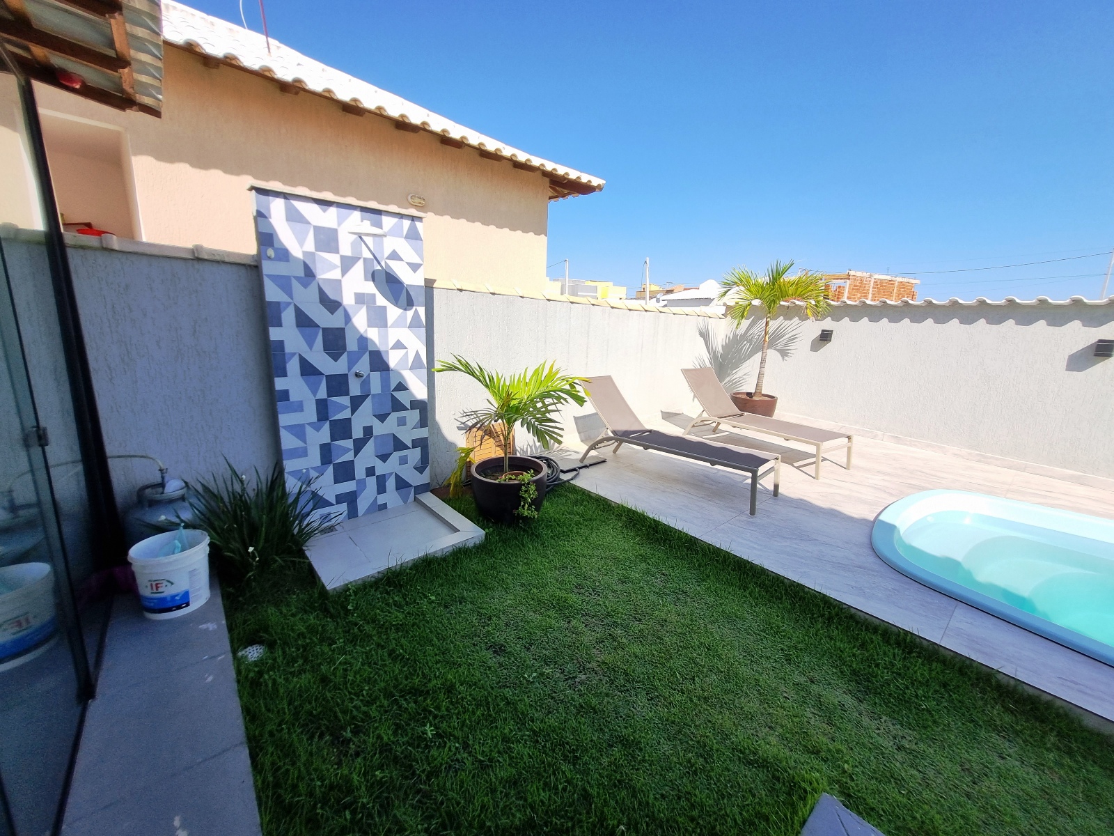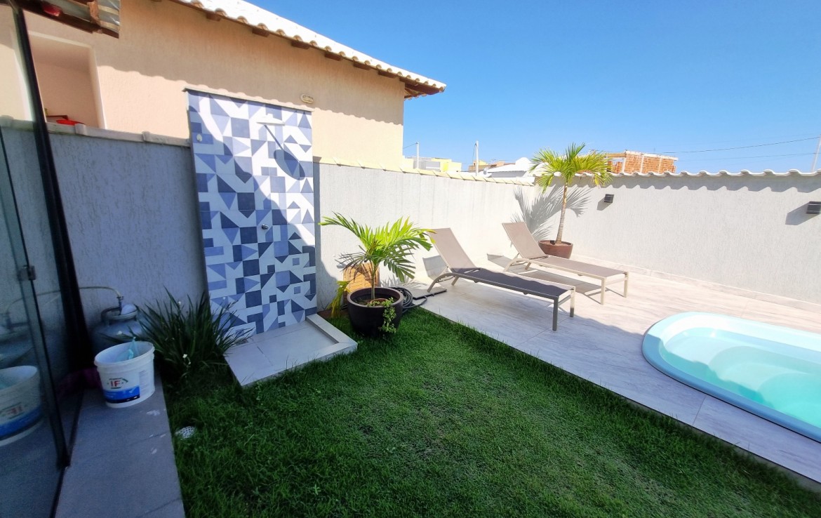ÁREA DE LAZER COM PISCINA E DUCHA.