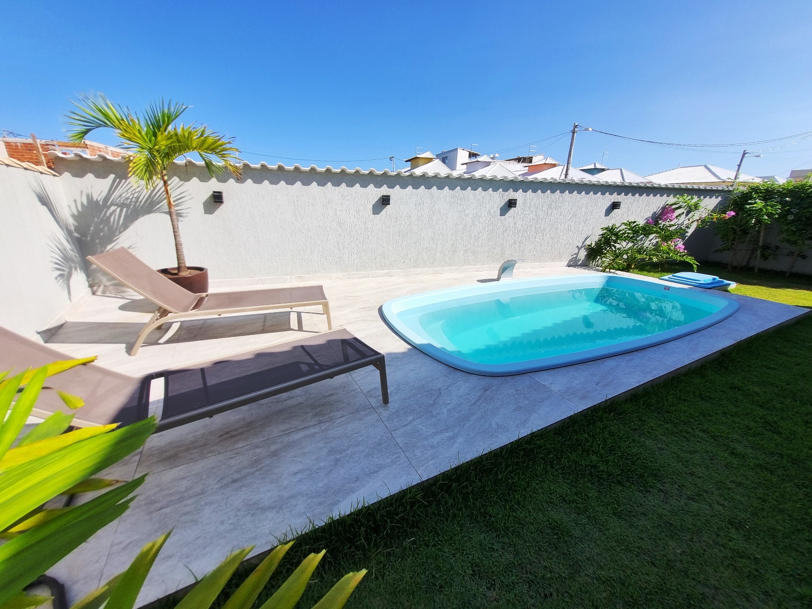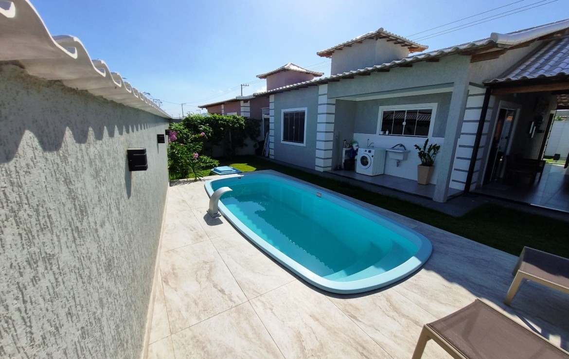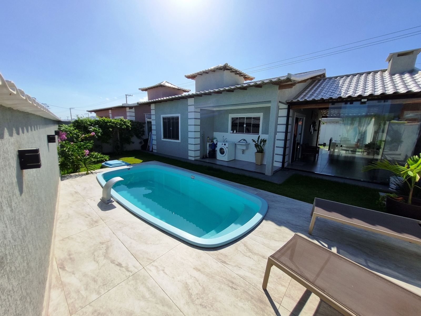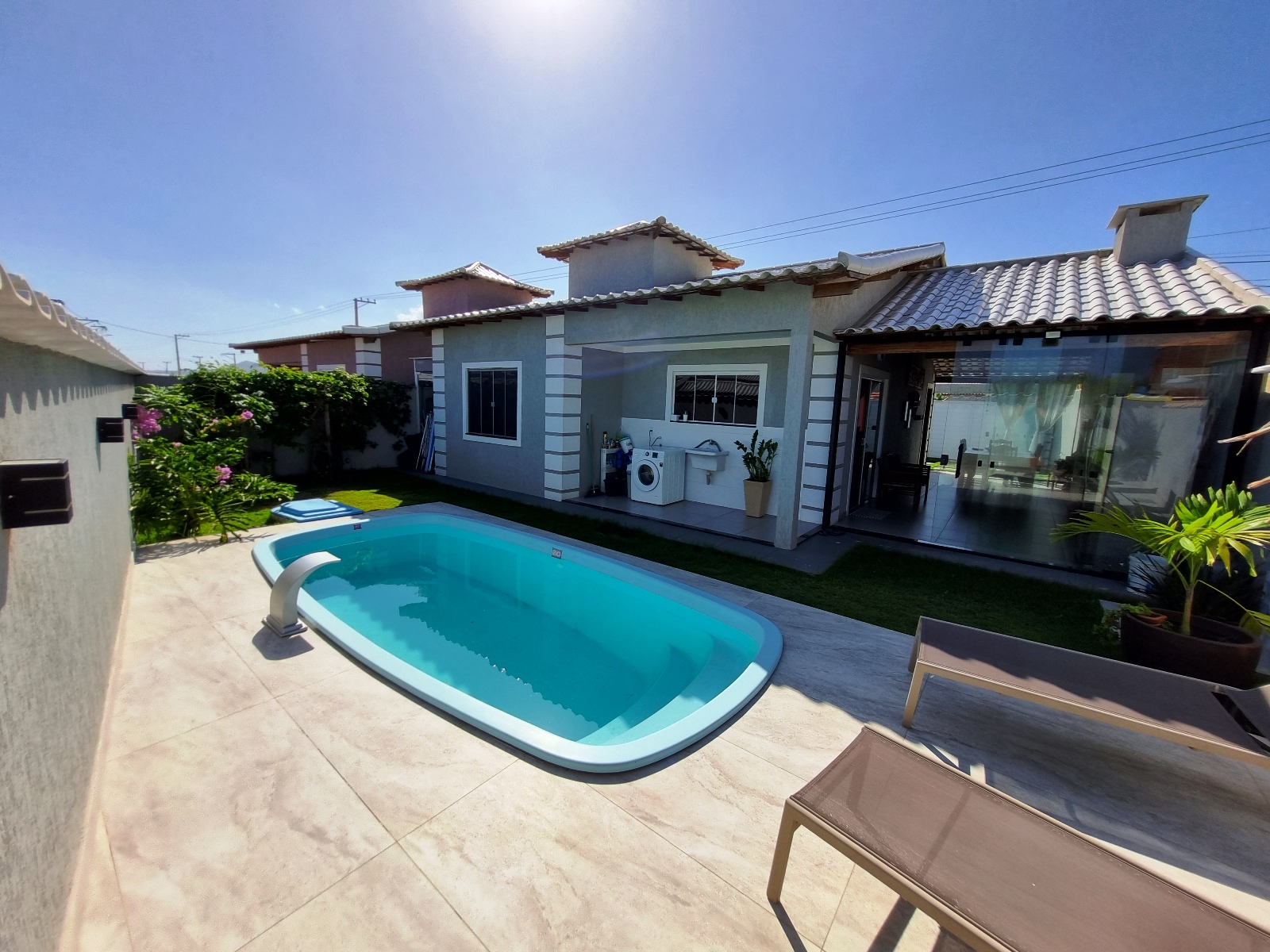 ÁREA DE LAZER COM PISCINA E DUCHA.