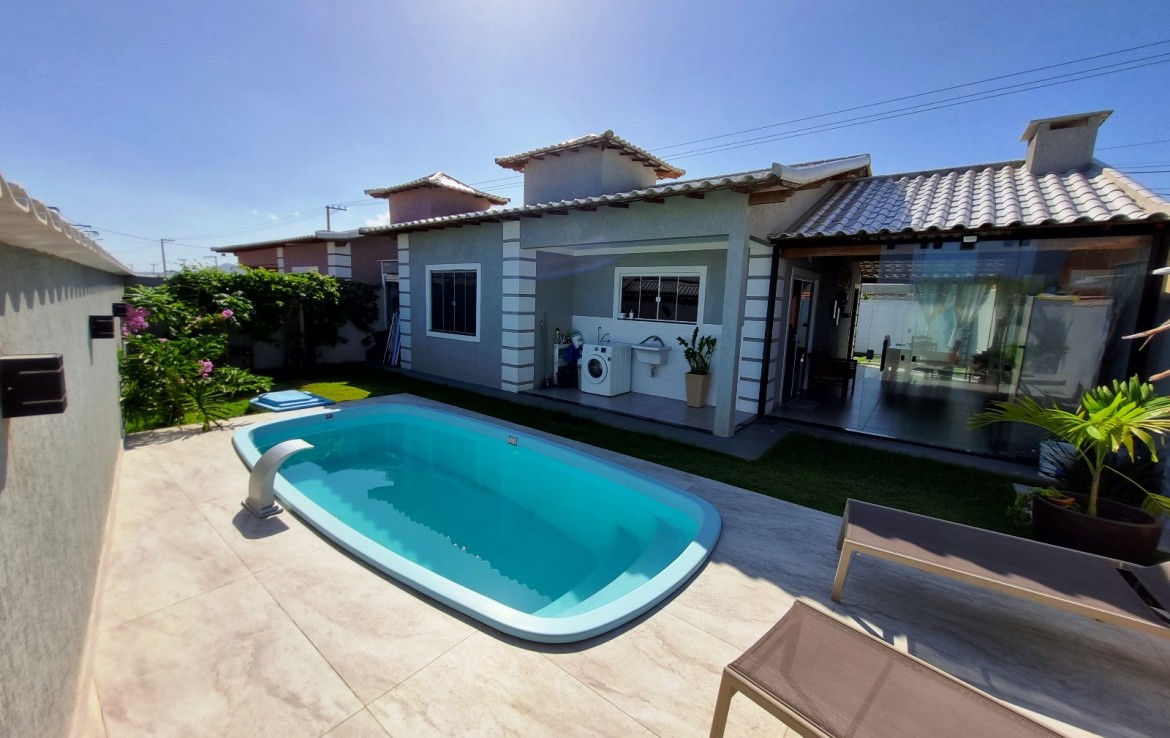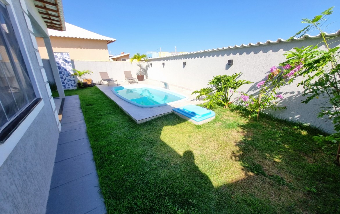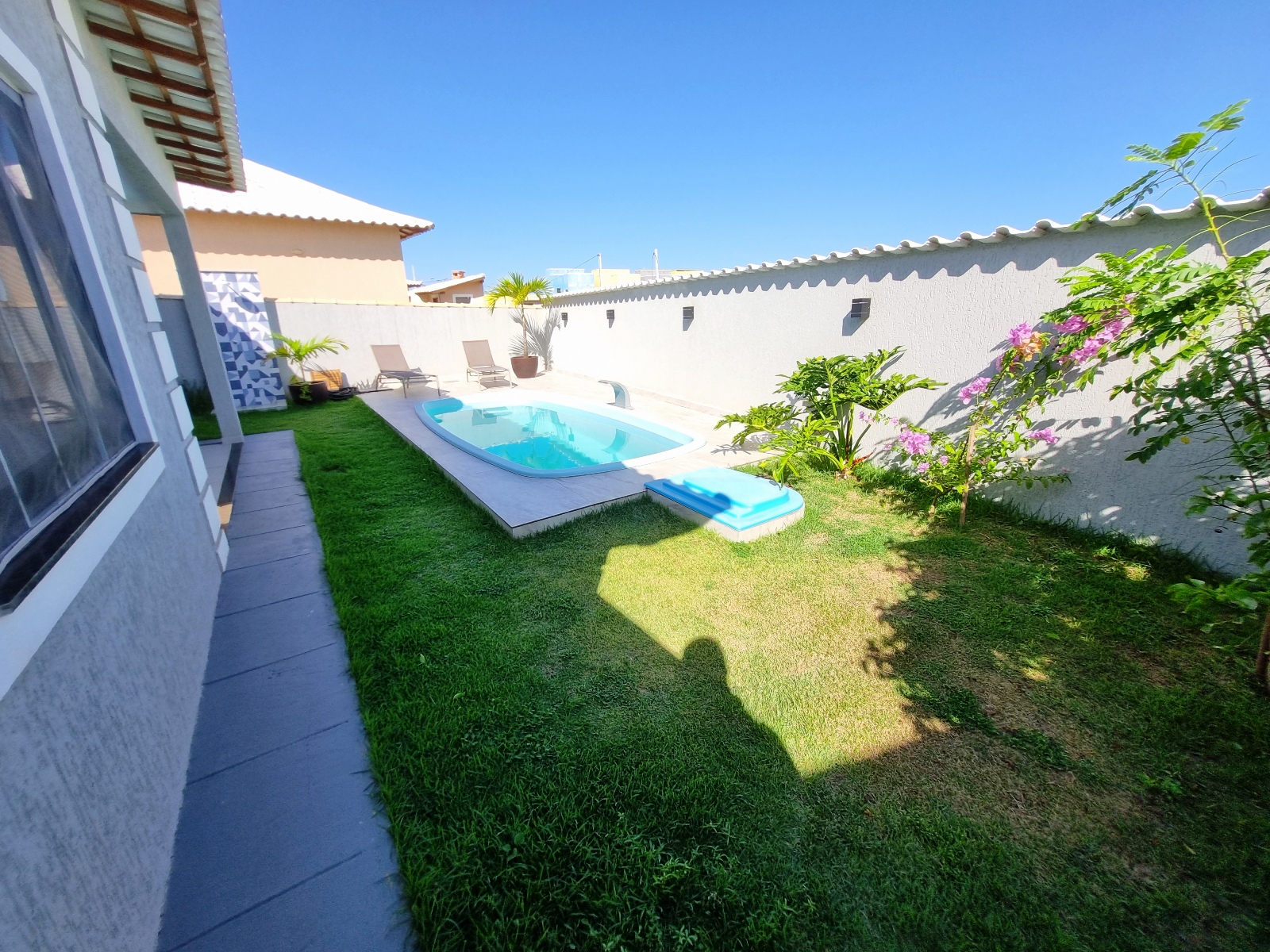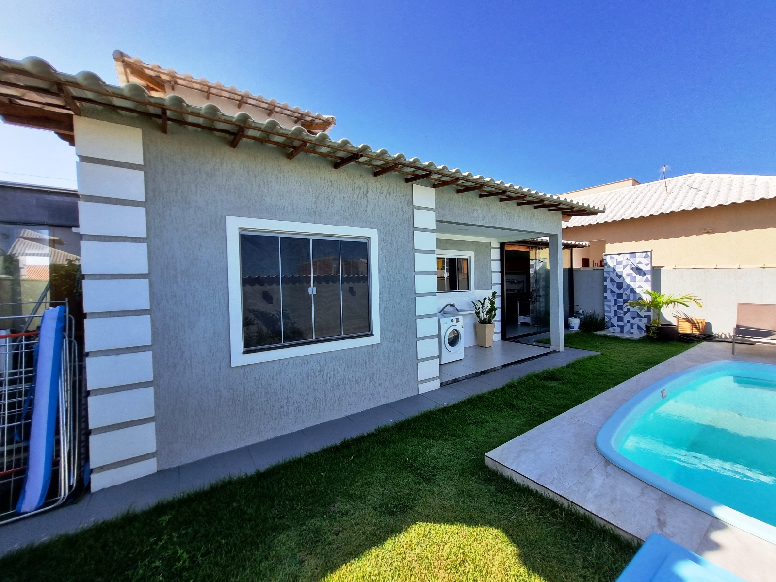 ÁREA DE LAZER COM PISCINA E DUCHA.